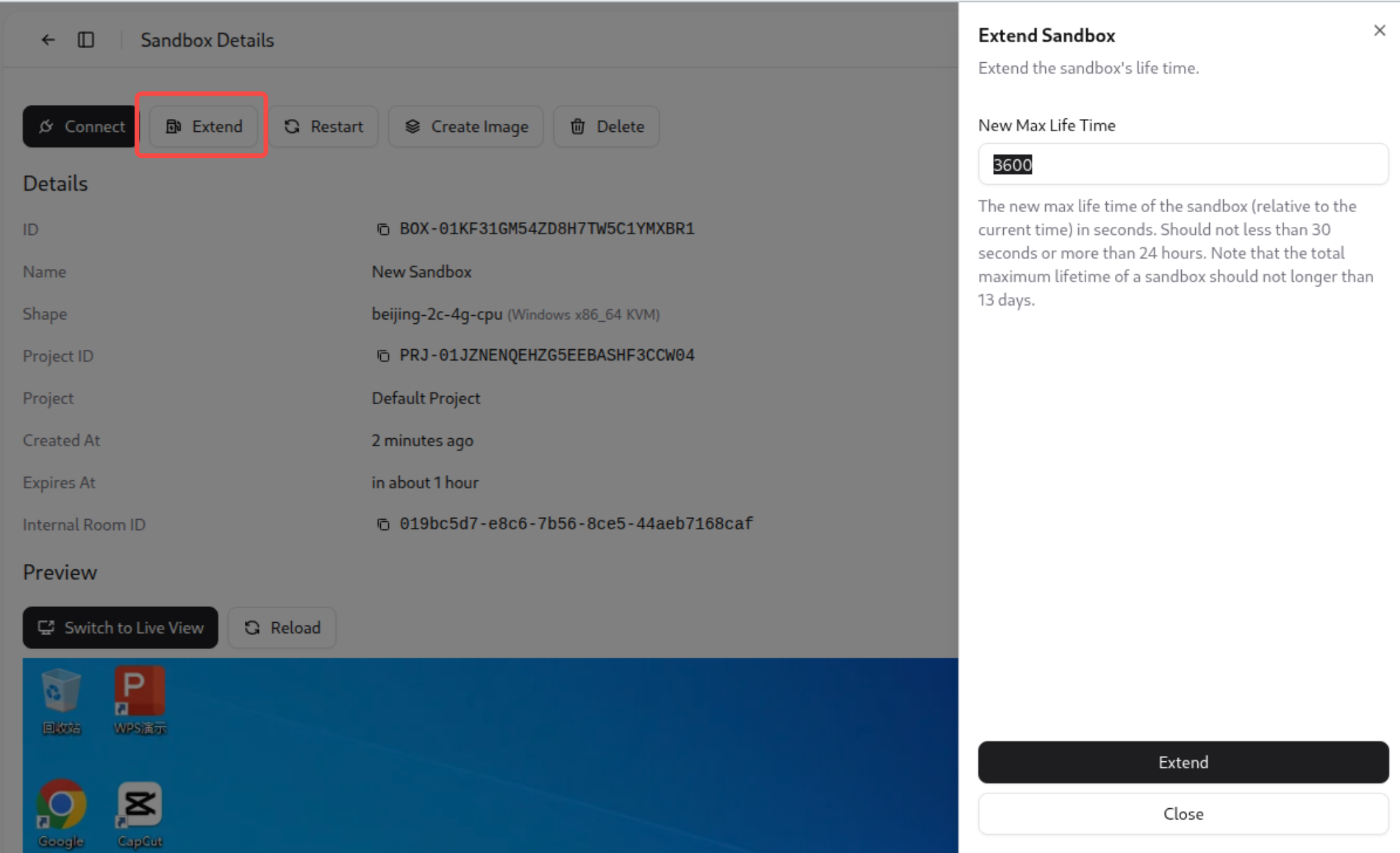 Extend Sandbox Lifetime